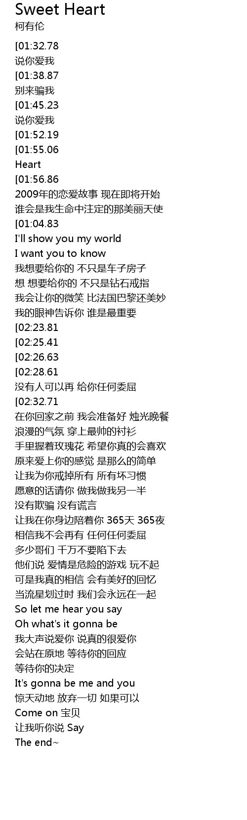 | [00:53.72][01:56.86][03:00.04][03:37.98][04:03.32][04:28.52] | Sweet Sweet Heart |