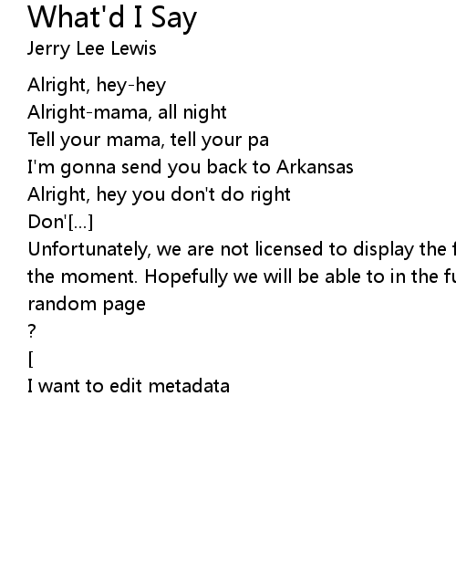 | Unfortunately, we are not licensed to display the full lyrics for this song at the moment. Hopefully we will be able to in the future. Until then, how about a | |