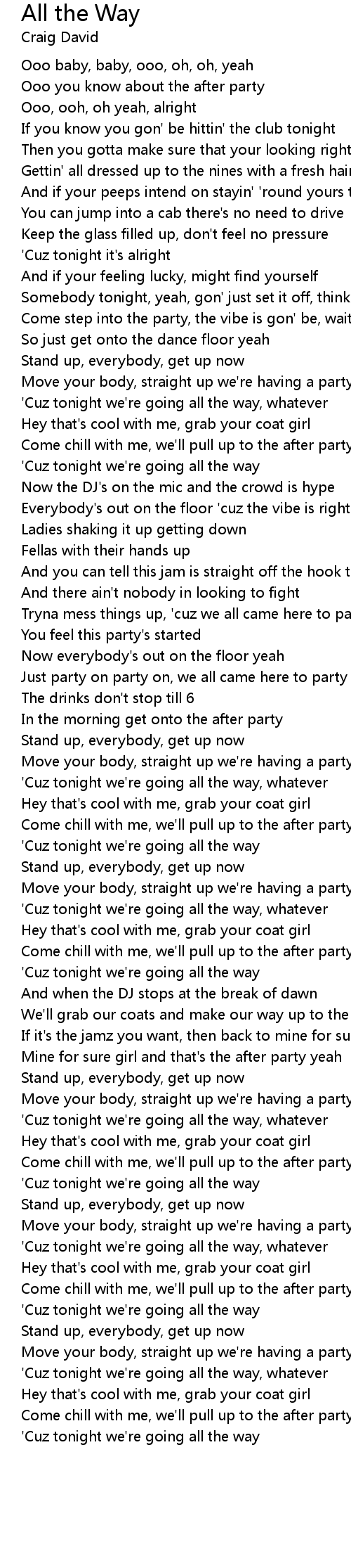 'Cuz tonight we're going all the way |