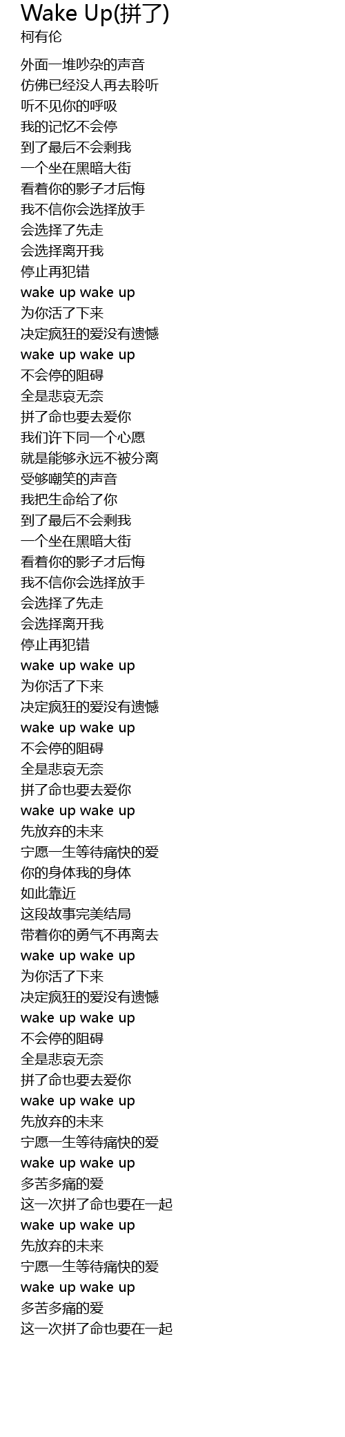 | Song | Wake Up(拼了) |