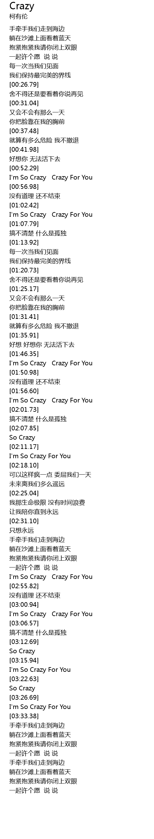 | [03:02.58] | I' m So Crazy Crazy For You |