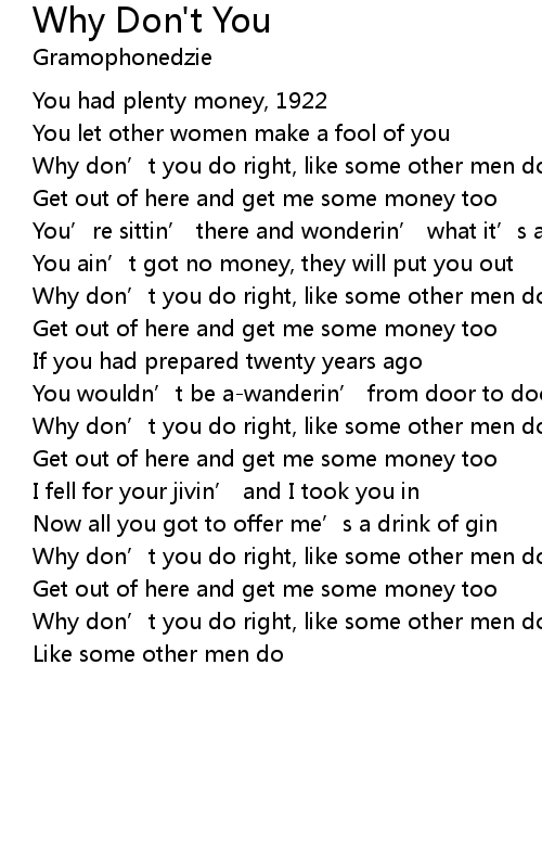 | Why don' t you do right, like some other men do? | |