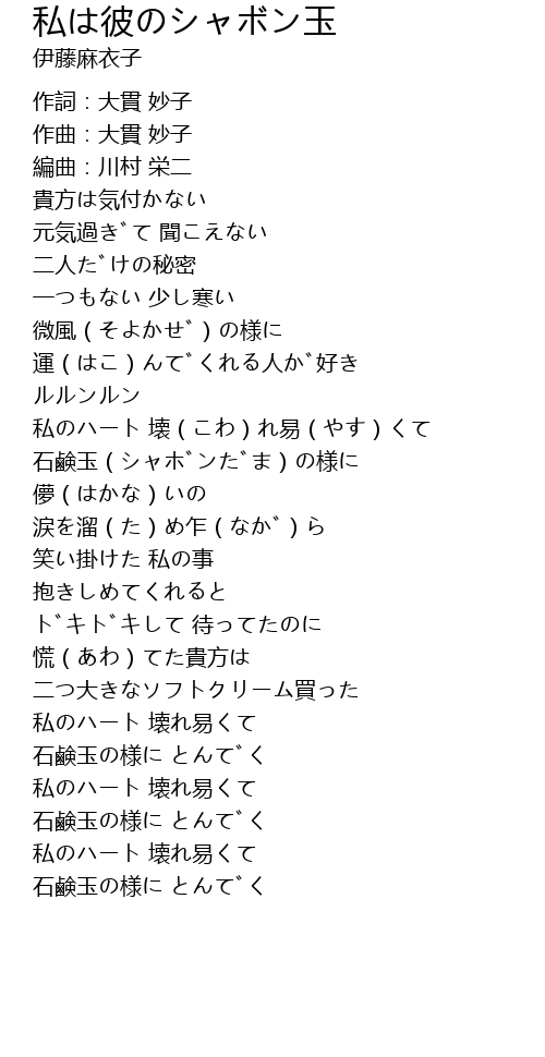 | [01:22.239] | 石鹸玉(シャボンだま)の様に 儚(はかな)いの |