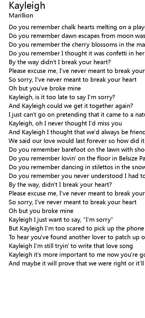 Kayleigh, is it too late to say I'm sorry? |