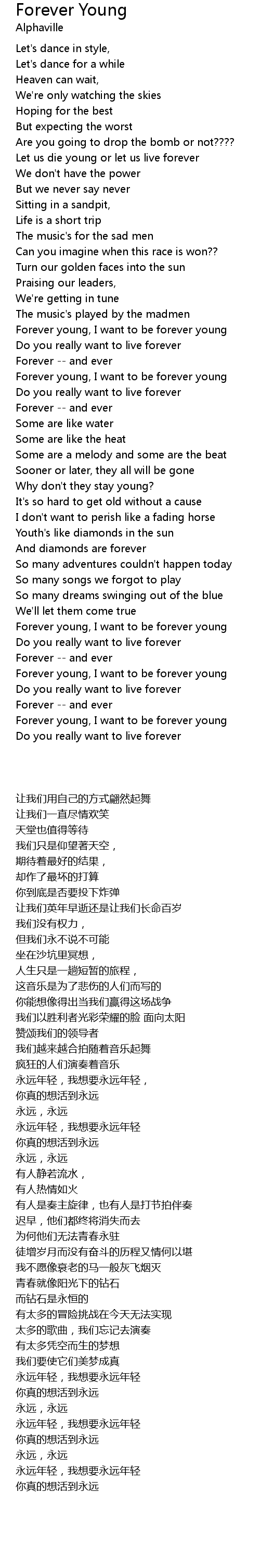 [02:25.00] Forever young, I want to be forever young