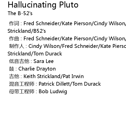 | [00:00.000] | 制作人 : Cindy Wilson/Fred Schneider/Kate Pierson/Keith Strickland/Tom Durack |