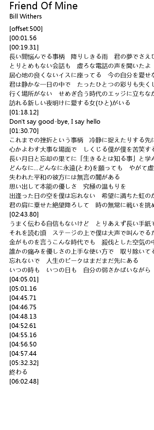 | [01:19.36] | Don't say good-bye, I say hello |