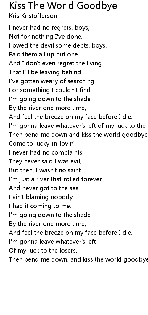 Then bend me down, and kiss the world goodbye. |