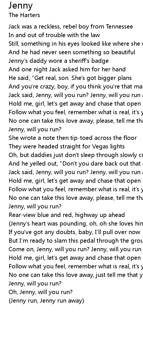 Jack said, Jenny, will you run? Jenny, will you run away with me? |
