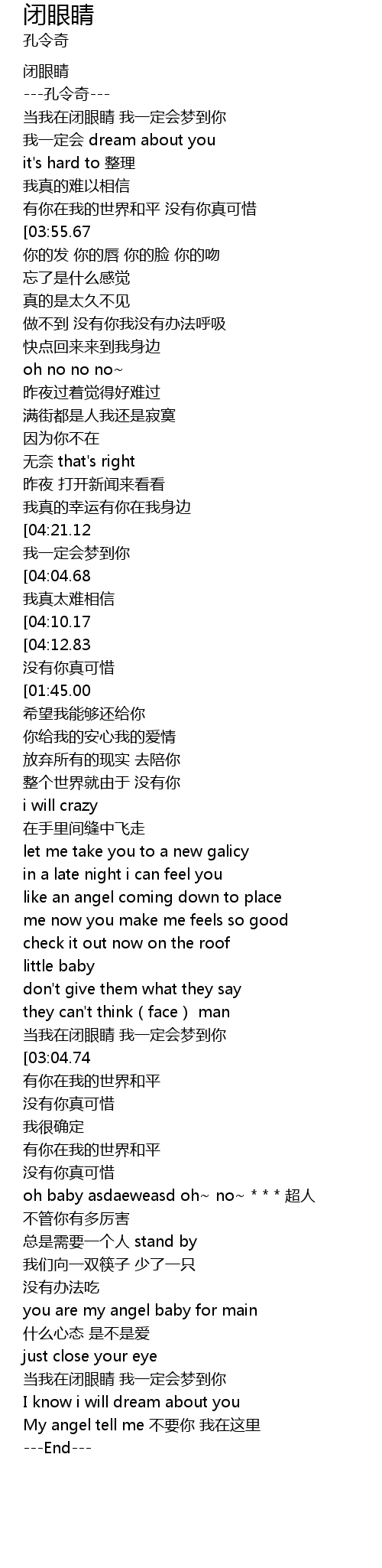 | [03:38.54] | 当我在闭眼睛 我一定会梦到你 |
