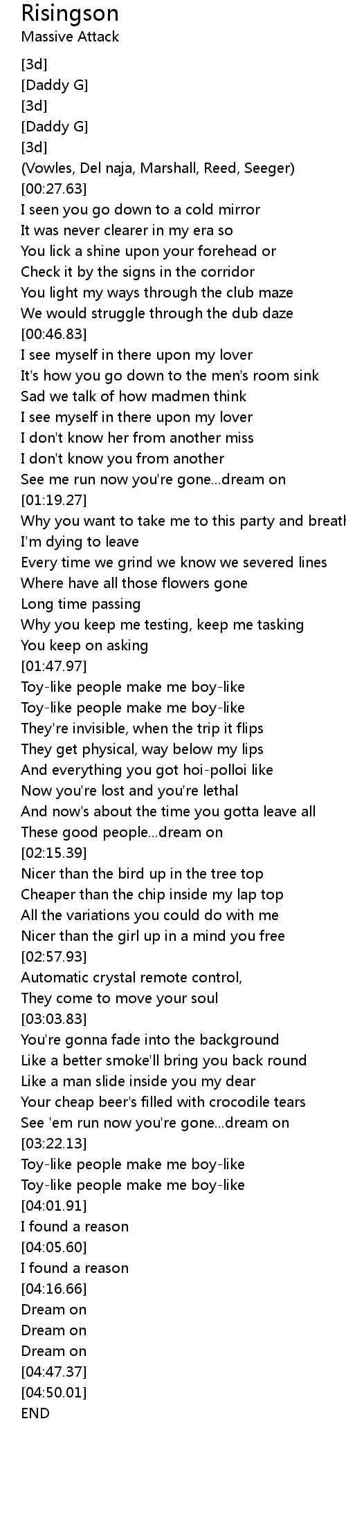 (Vowles, Del naja, Marshall, Reed, Seeger) |