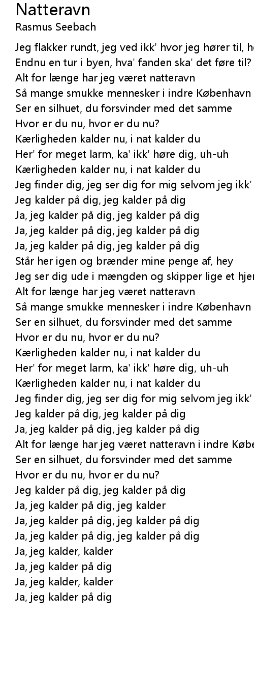 | [02:40.89] | Alt for l nge har jeg v ret natteravn i indre K benhavn |