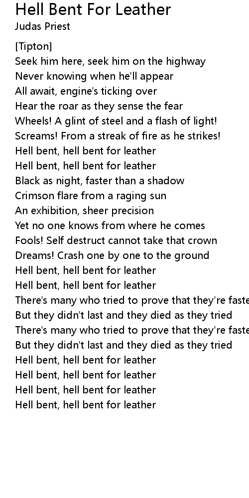 Hell bent, hell bent for leather |