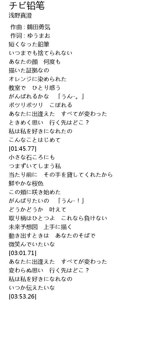 | [03:29.83] | あなたに出逢えた すべてが変わった |