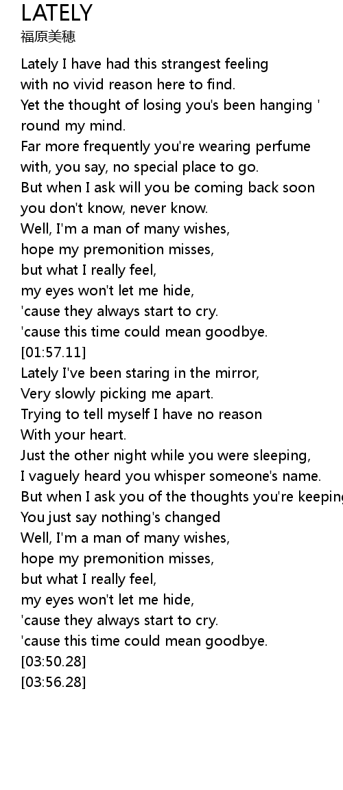 Lately I have had this strangest feeling |