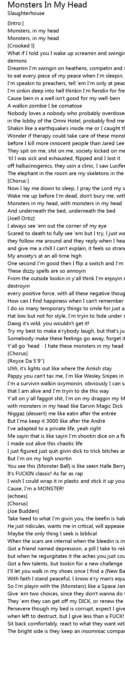 | Wake me up before I' m dead, don' t bury me, with monsters in my head | |