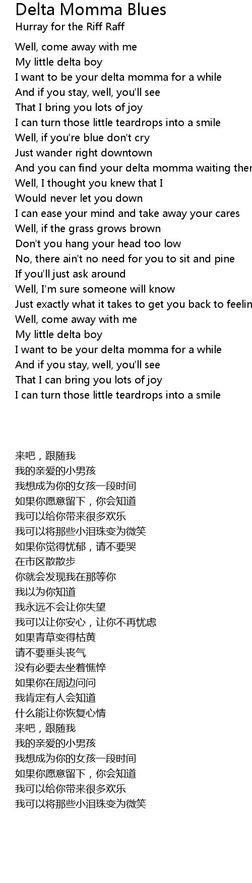 And you can find your delta momma waiting there |