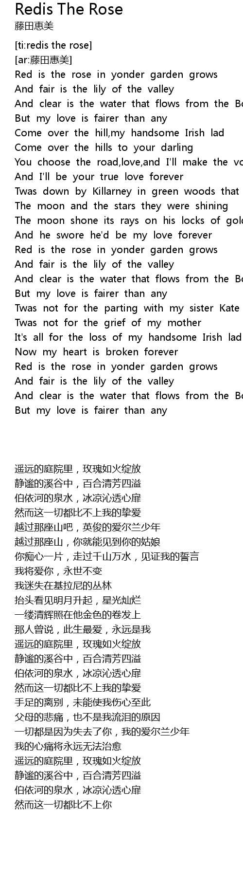 | [02:53.05] | Red is the rose in yonder garden grows |
