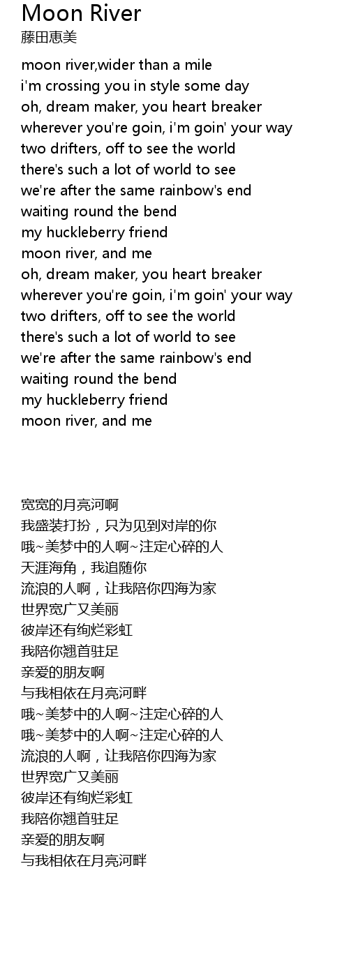 | [00:08.69] | moon river,wider than a mile |