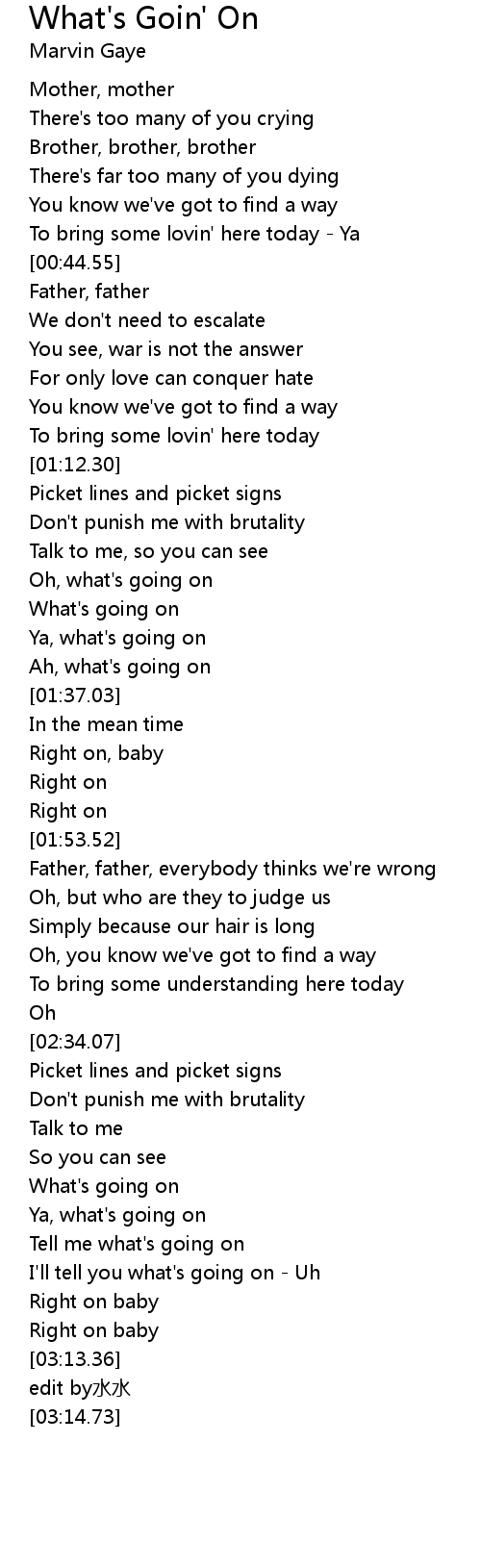 | [00:41.99] | To bring some lovin' here today - Ya |
