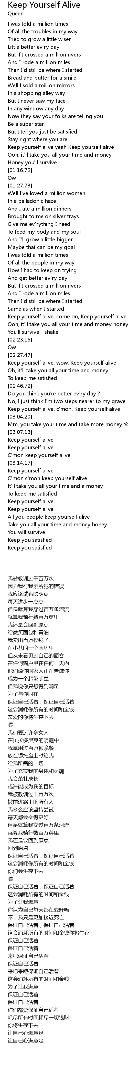 | [03:22.36] | Keep yourself alive |