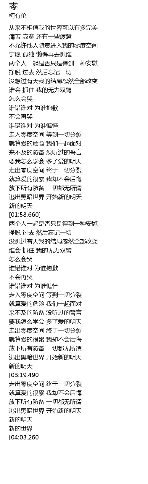 | [02:55.910] | 走出零度空间 终于一切分裂 |