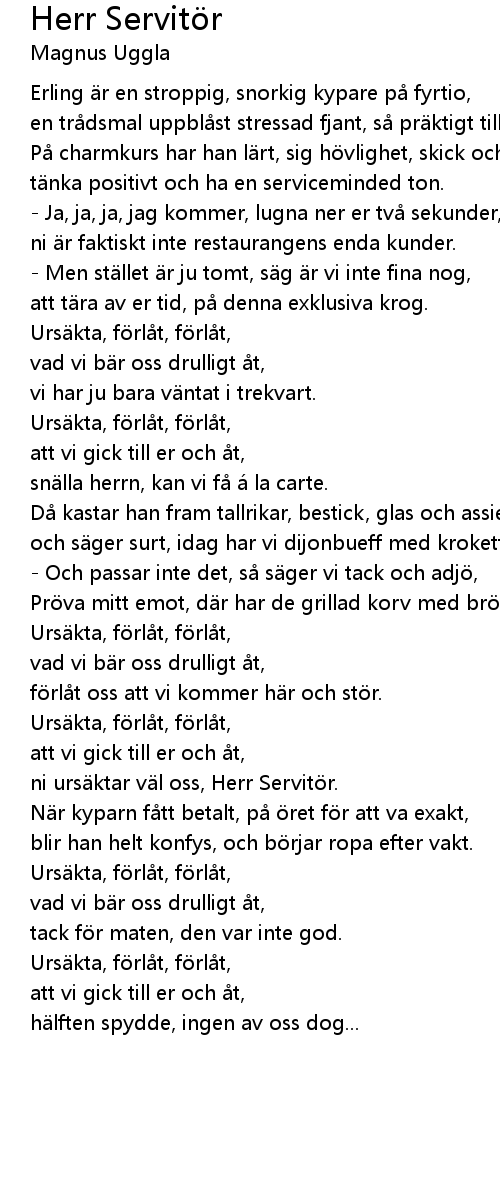 | Song | Herr Servitör |