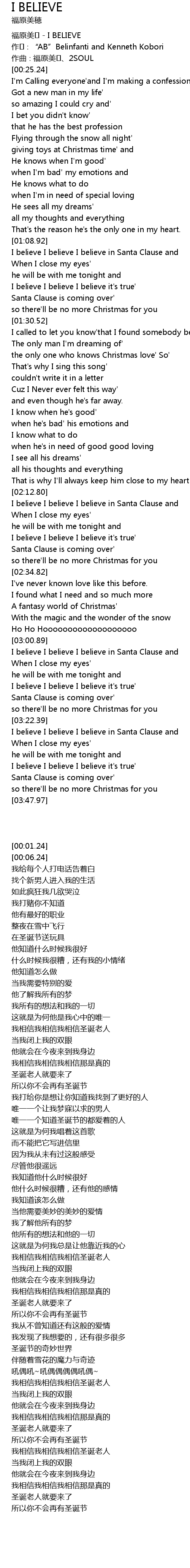 | [03:22.98] | I believe I believe I believe in Santa Clause and |