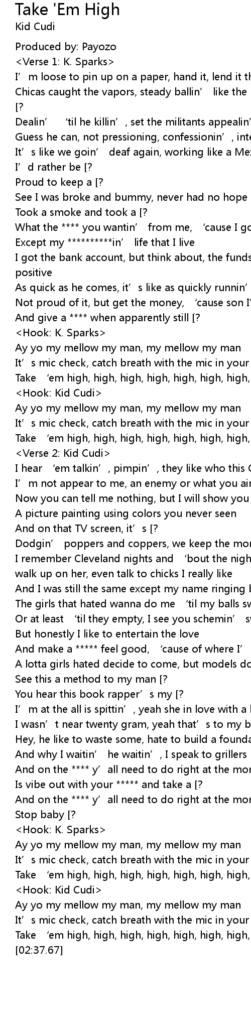 | [02:32.18] | Take ' em high, high, high, high, high, high, high, high |