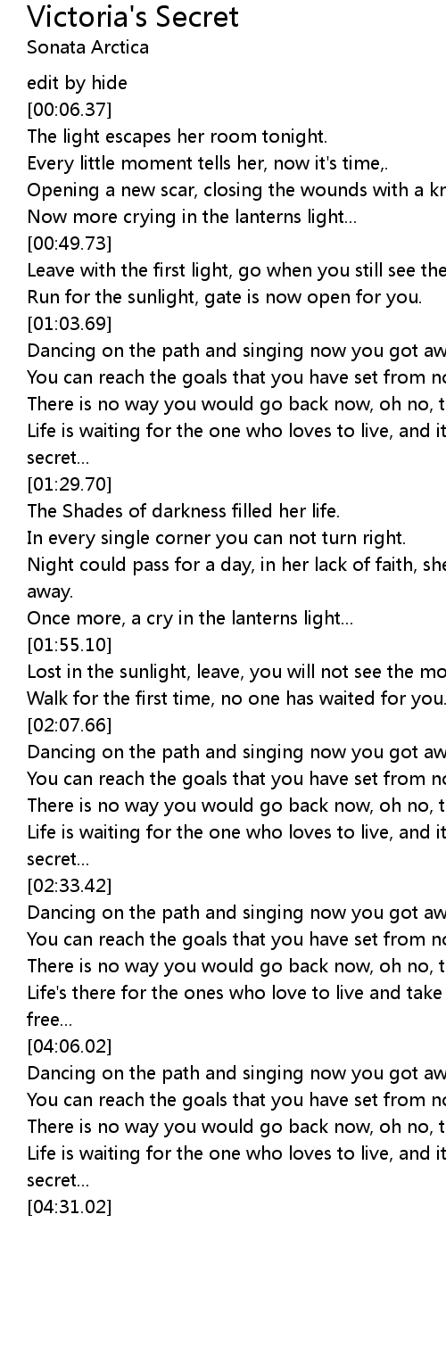 [01:41.39] Night could pass for a day, in her lack of faith, she let it all fade away.
