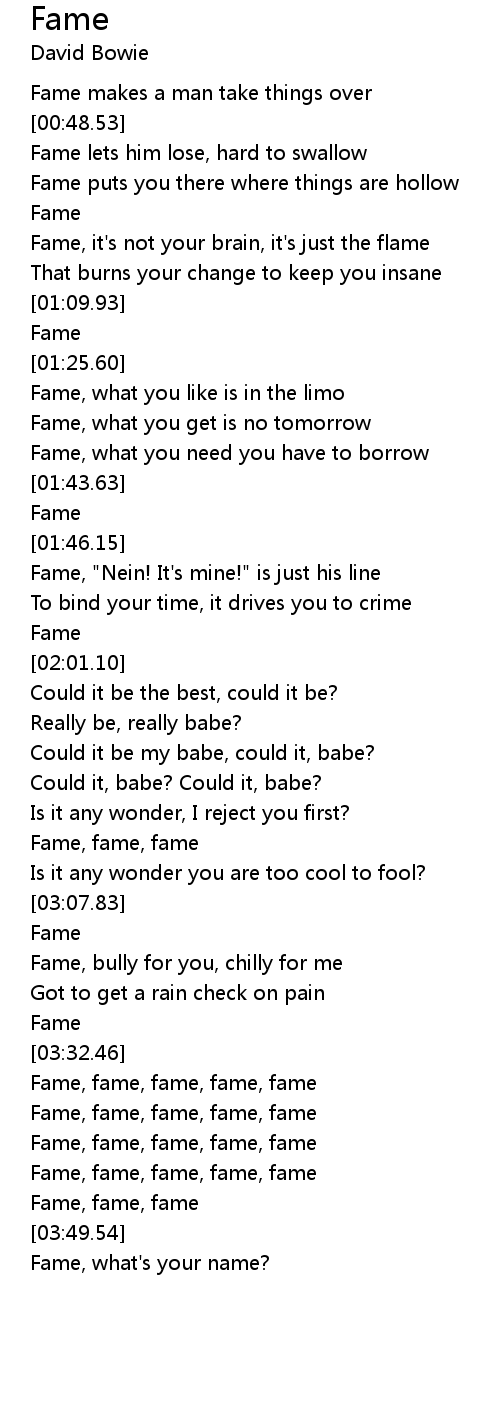Fame, what's your name? |