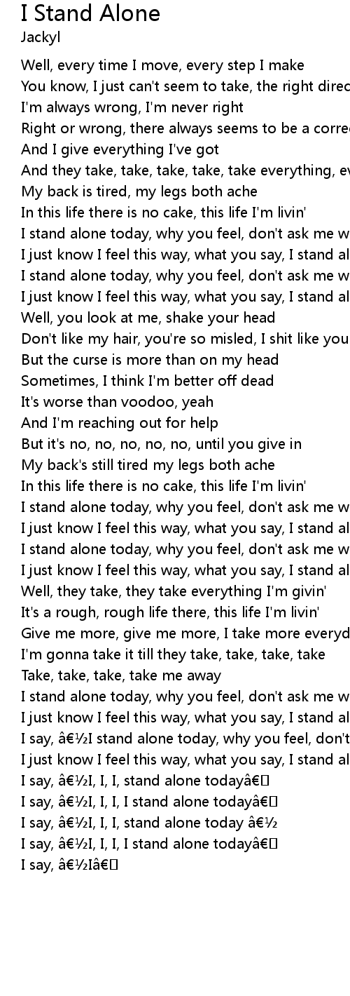 | I say, I, I, I, I stand alone today | |