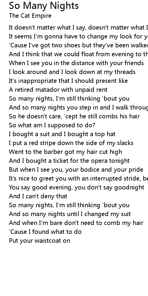 So Many Nights Lyrics