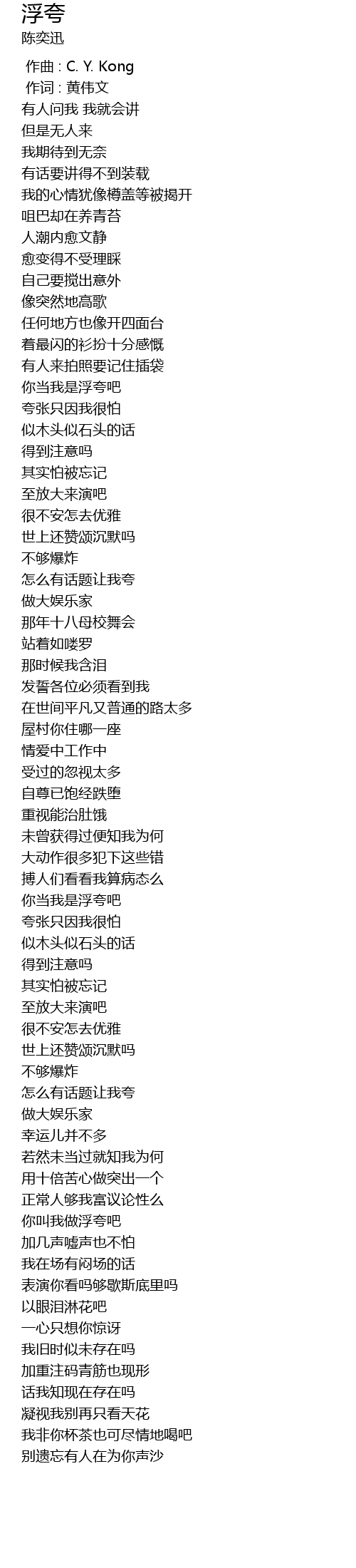| Song | 浮夸 |