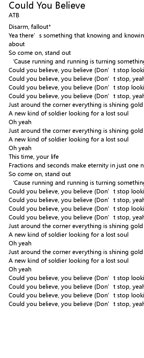 | Could you believe, you believe (Don’t stop, yeah) | |