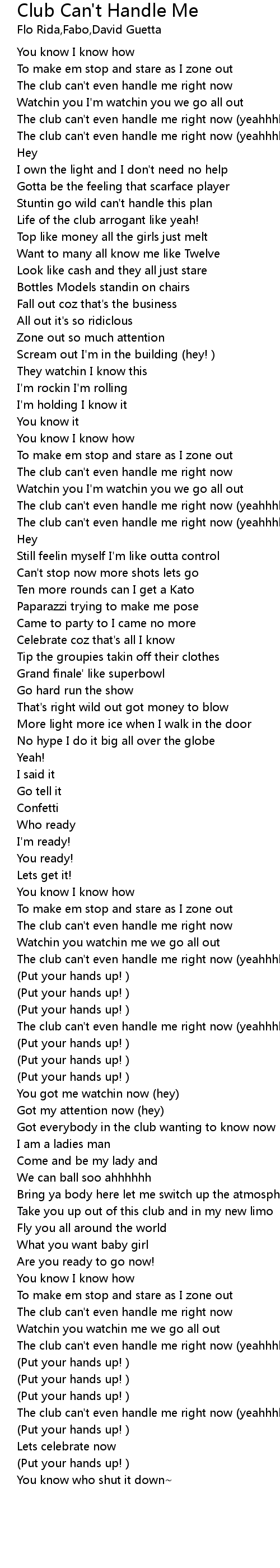 The club can't even handle me right now (yeahhhhh) |