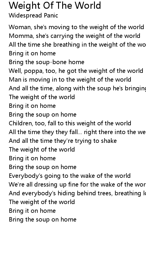 Well, poppa, too, he got the weight of the world |