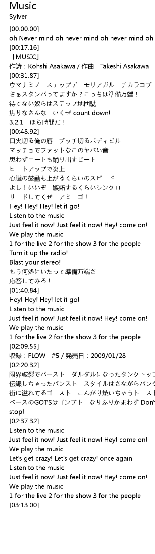 | [02:11.55] | 収録:FLOW - #5/発売日:2009/01/28 |