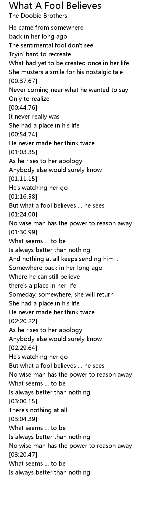 But what a fool believes ... he sees |