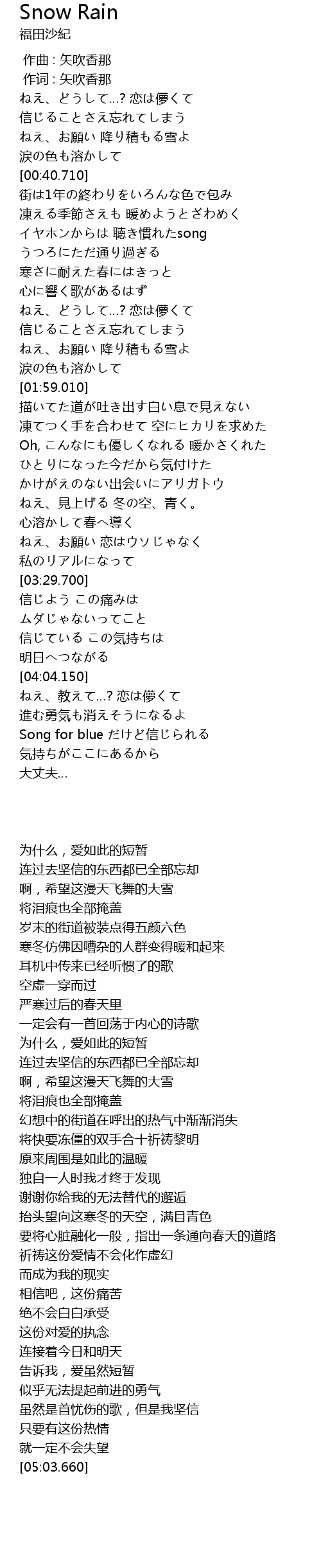 | [01:45.200] | ねえ、お願い 降り積もる雪よ |