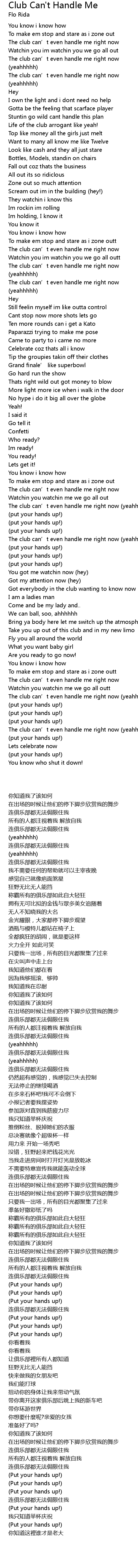 | [02:28.400] | The club can' t even handle me right now yeahhhhh |