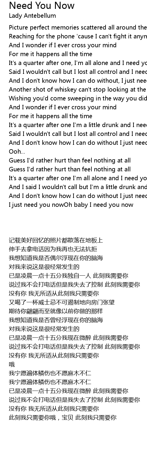 And I said I wouldn't call but I'm a little drunk and I need you now |
