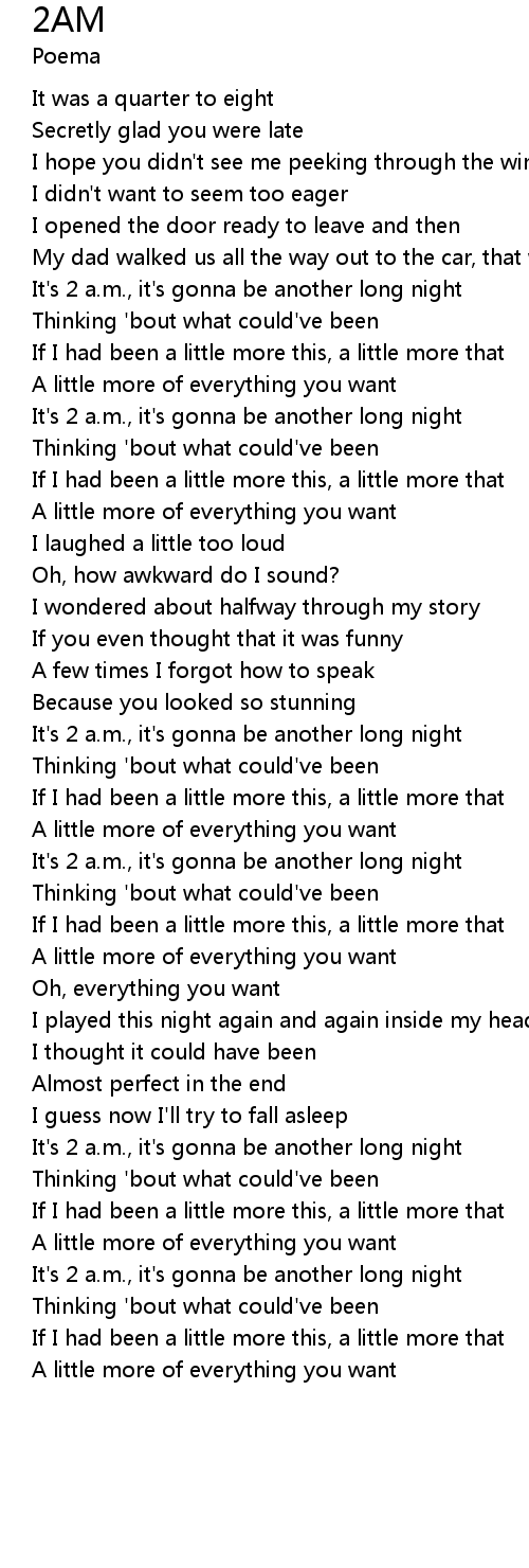 It's 2 a.m., it's gonna be another long night |
