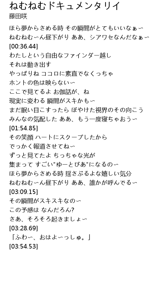 | [02:59.32] | ねむねむ〜ん昼下がり ああ、誰かが呼んでる〜 |