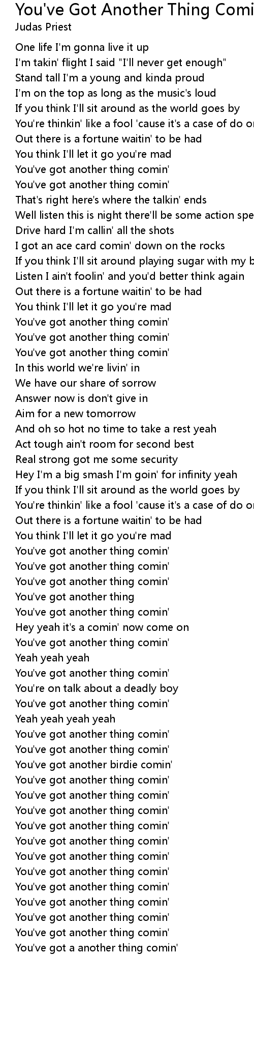 You've got a another thing comin' |