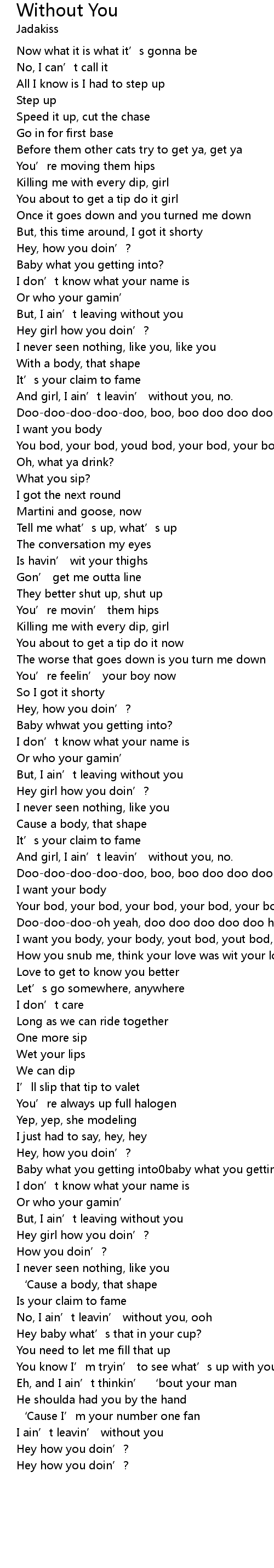 | No, I ain' t leavin' without you, ooh | |