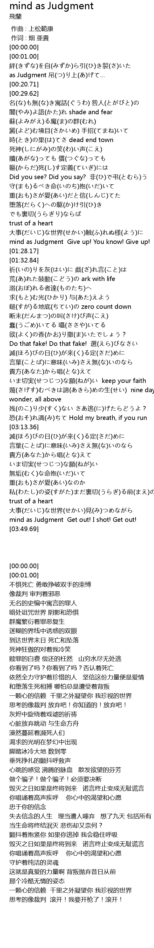 | [03:45.26] | mind as Judgment Get out! I shot! Get out! |