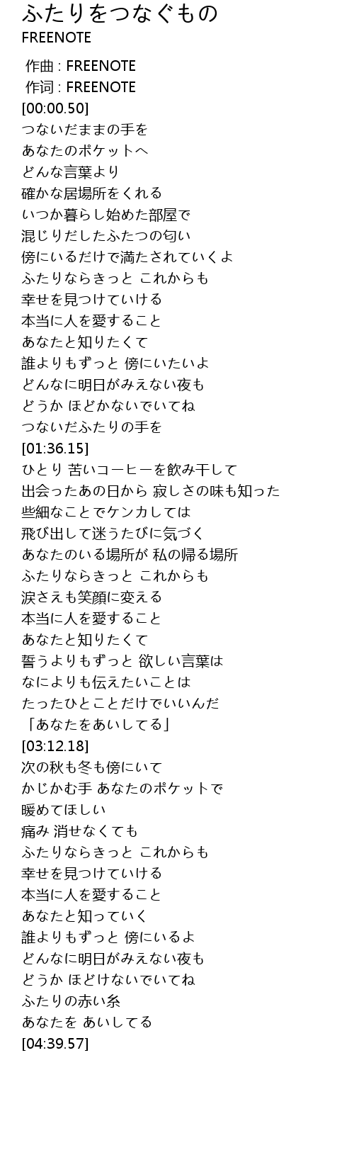 | [03:37.87] | かじかむ手 あなたのポケットで |