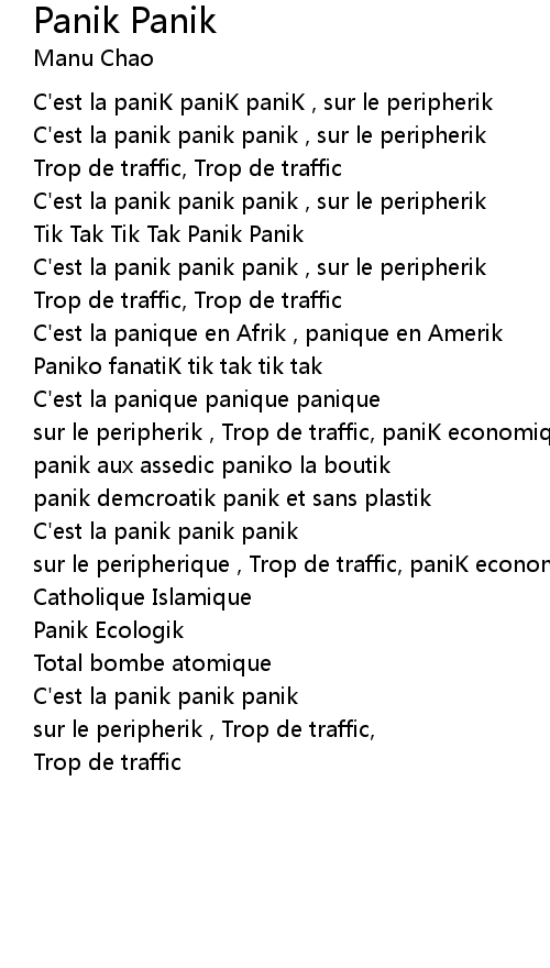 C'est la panik panik panik |