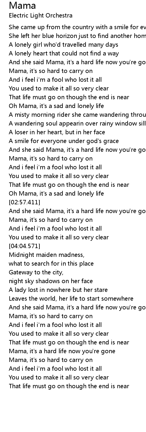 And she said Mama, it's a hard life now you're gone |